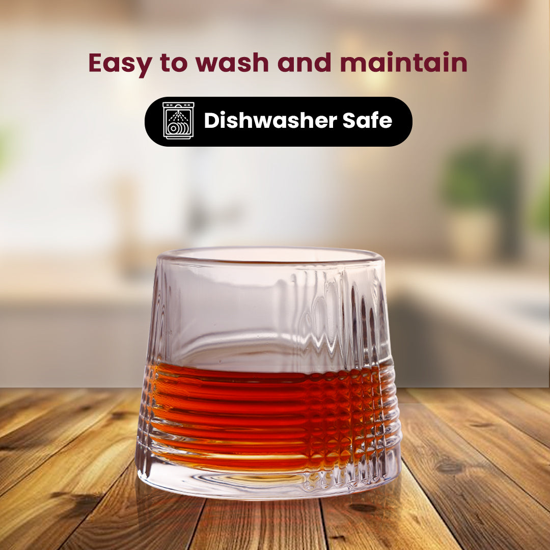 Revolving Base Design – Swirls effortlessly for a dynamic, sensory experience. Intricate Texture – Horizontal grooves with grid impressions create a visual and tactile edge. Premium Crystal Clarity – Ultra-clear glass enhances the color of your drink. Stable Weighted Bottom – Prevents tipping even during revolutions. Lead-Free & Safe – Made from high-quality, food-safe materials. Elegant Gift-Ready Packaging – Ideal for gifting or upgrading your personal bar.