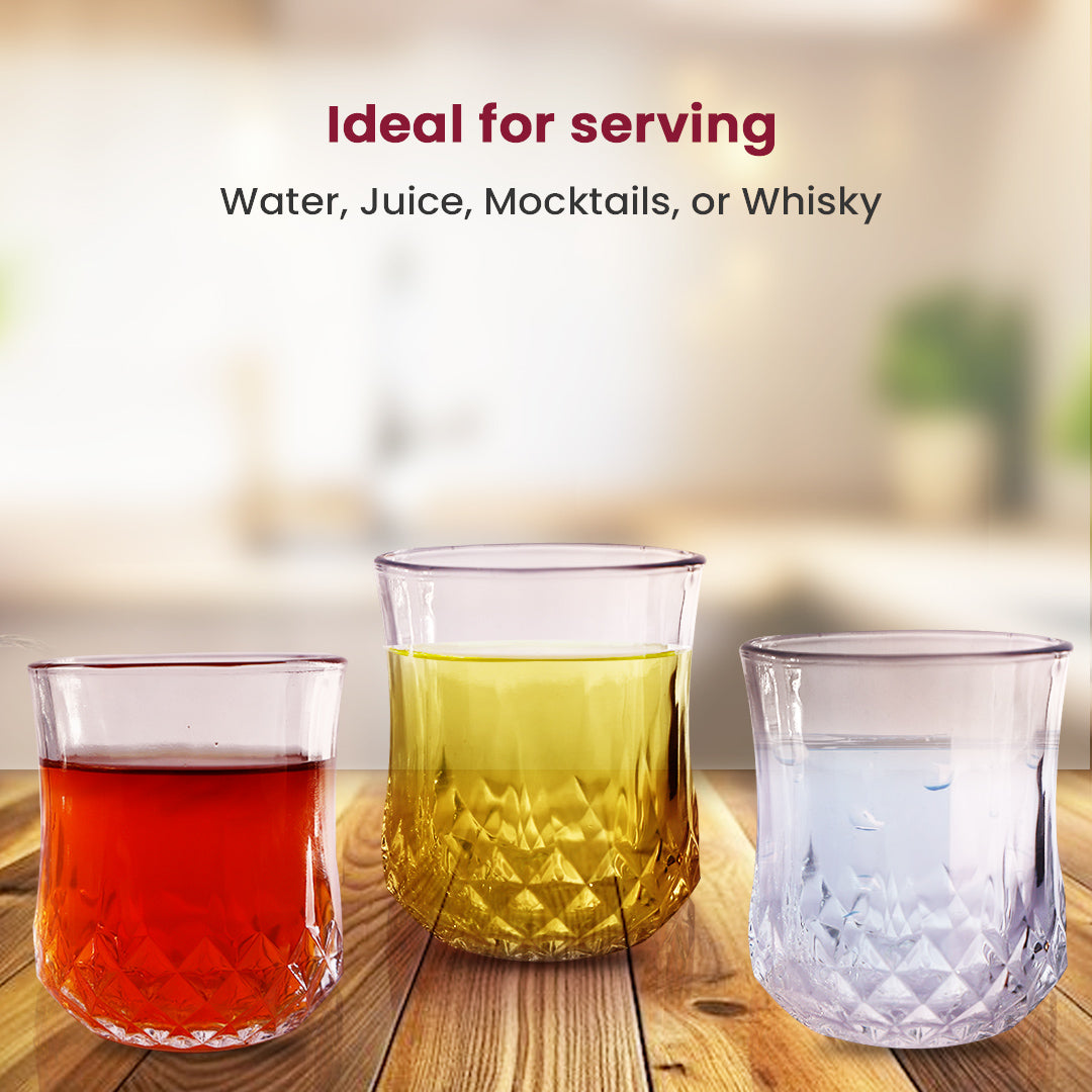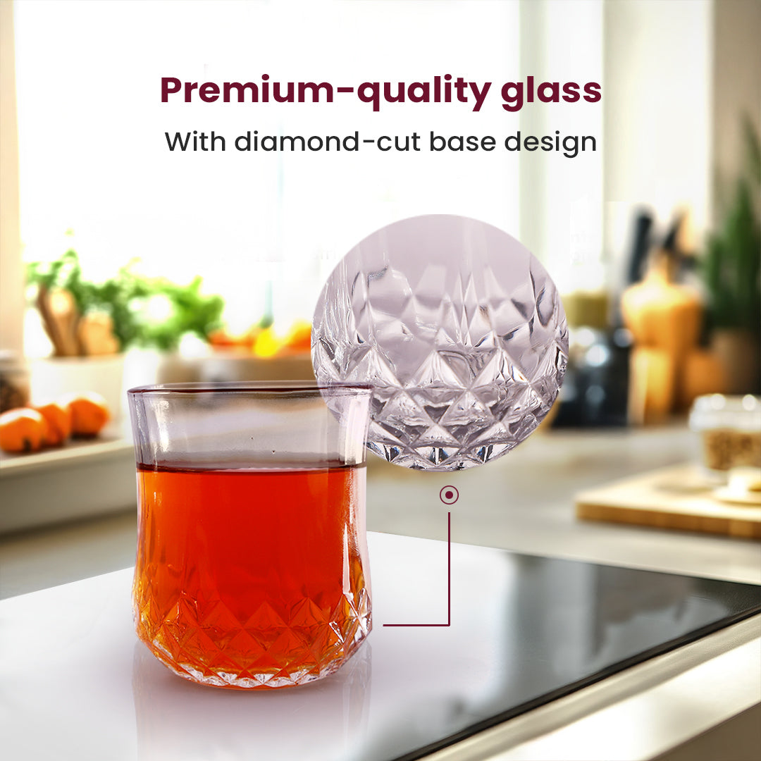 💠 Elegant Curved Design – Offers a modern twist and ergonomic hold, perfect for relaxed sipping. ✨ Diamond-Cut Detailing – Adds a sparkling charm and luxurious visual appeal. 🥂 Multi-Use Glassware – Suitable for both casual and special occasions. 💪 Durable Construction – Made from thick, break-resistant glass for long-lasting use. 🧽 Effortless Cleaning – Crystal-clear finish retains shine even after multiple washes. 🎁 Sophisticated Gift Choice – Ideal for housewarmings, anniversaries, and festive celebrations.