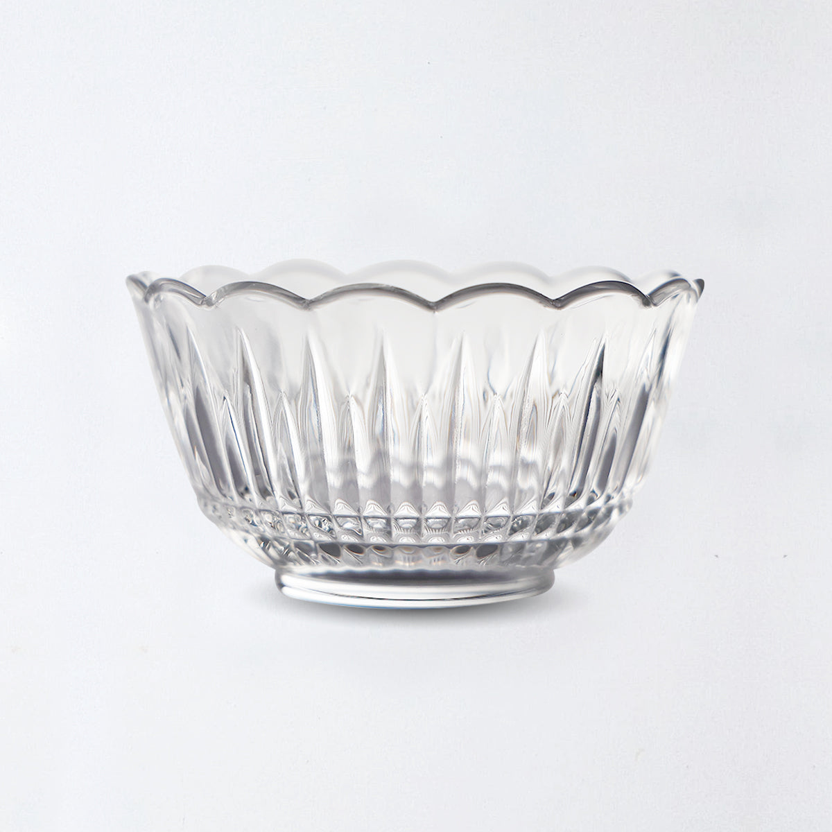 Add a touch of timeless elegance to your dining experience with this Clear Glass Bowl. Featuring a scalloped edge and a delicately textured design, this piece is perfect for serving desserts, snacks, salads, or condiments. With dimensions of 9×8.5×5 cm, it’s the ideal size for both everyday meals and festive gatherings. Made from premium quality glass, it is durable, easy to clean, and designed to complement any table setting.