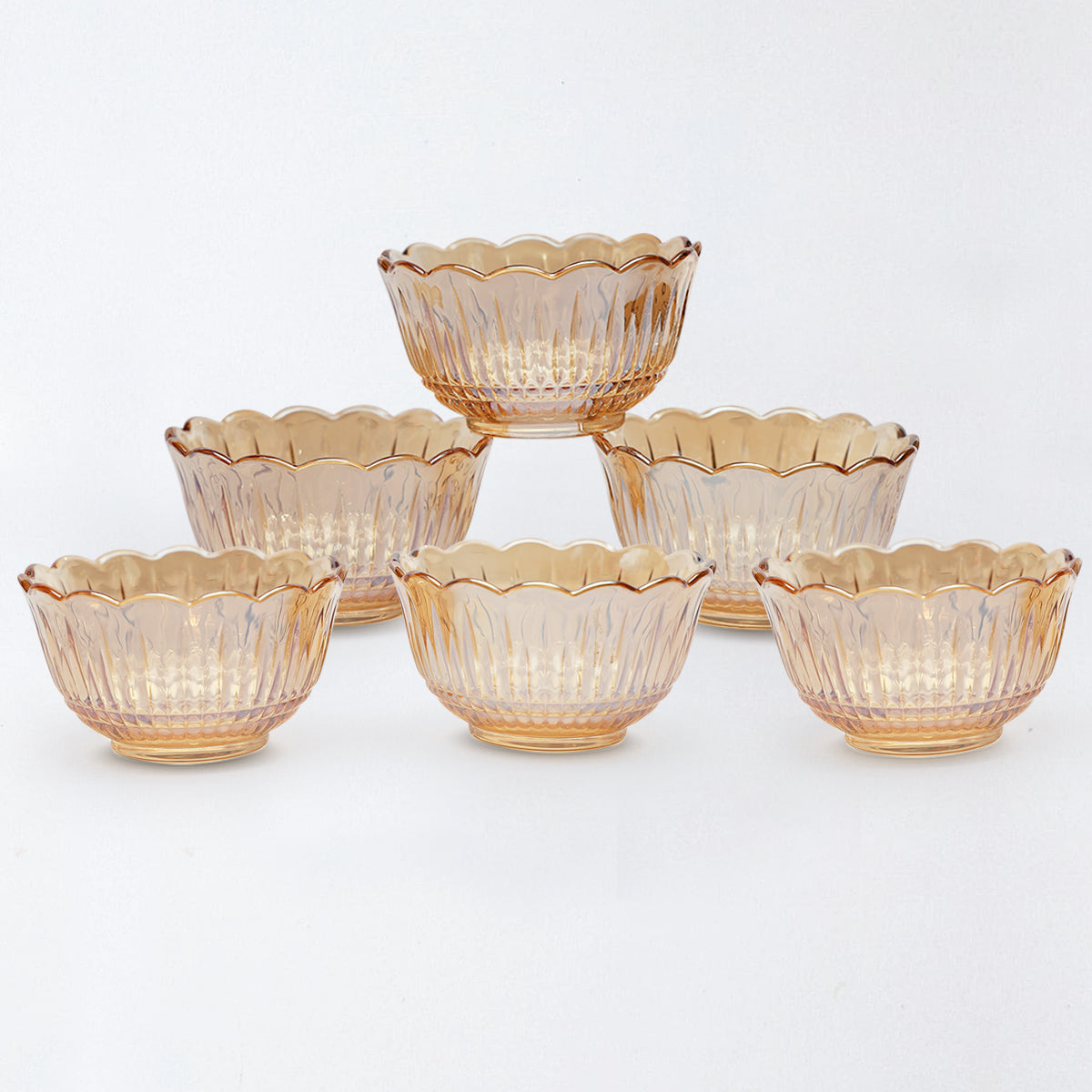 Add a touch of luxury to your dining experience with this Golden Shine Glass Bowl. Its crystal-clear glass body with a radiant golden finish makes it perfect for serving desserts, dry fruits, snacks, or even as a stylish decorative piece. Compact yet elegant, this bowl combines durability with sophistication, making it a versatile addition to any home.