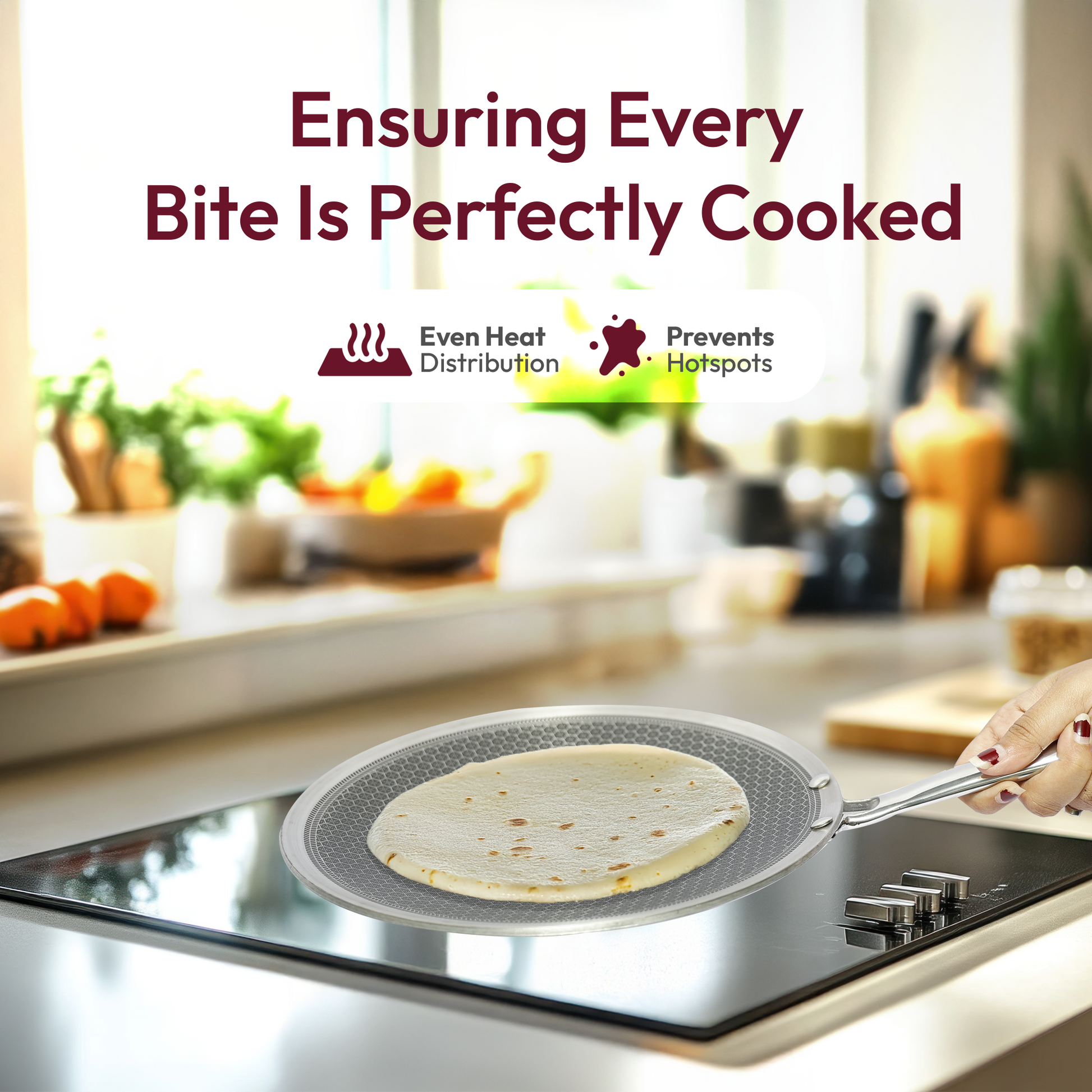 Hybrid Tawa Surface: Smooth, easy-release cooking for perfect results.