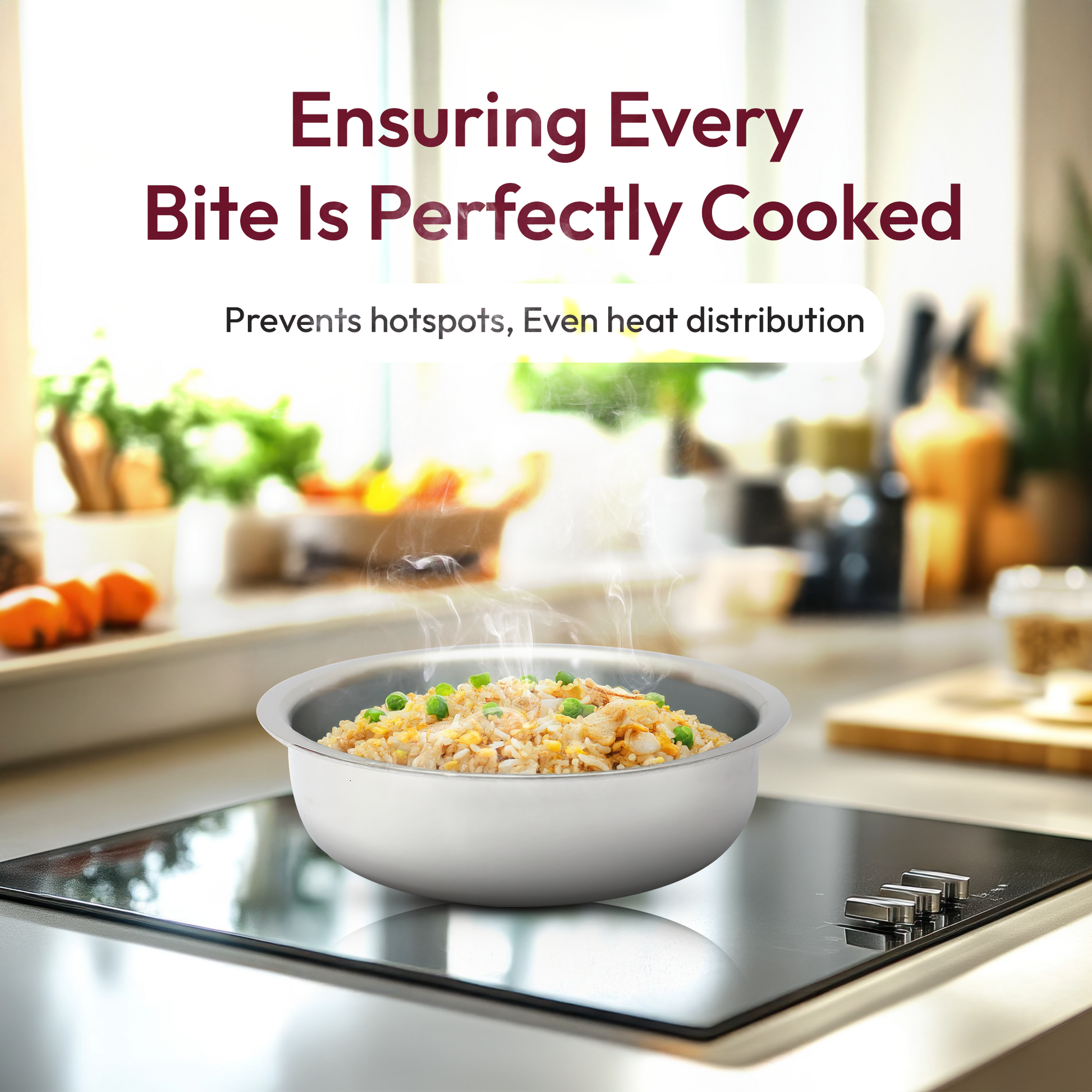 Experience the perfect balance of style, durability, and performance with this 3-piece Triplex Stainless Steel Langdi Cookware Set, designed for versatile everyday cooking.