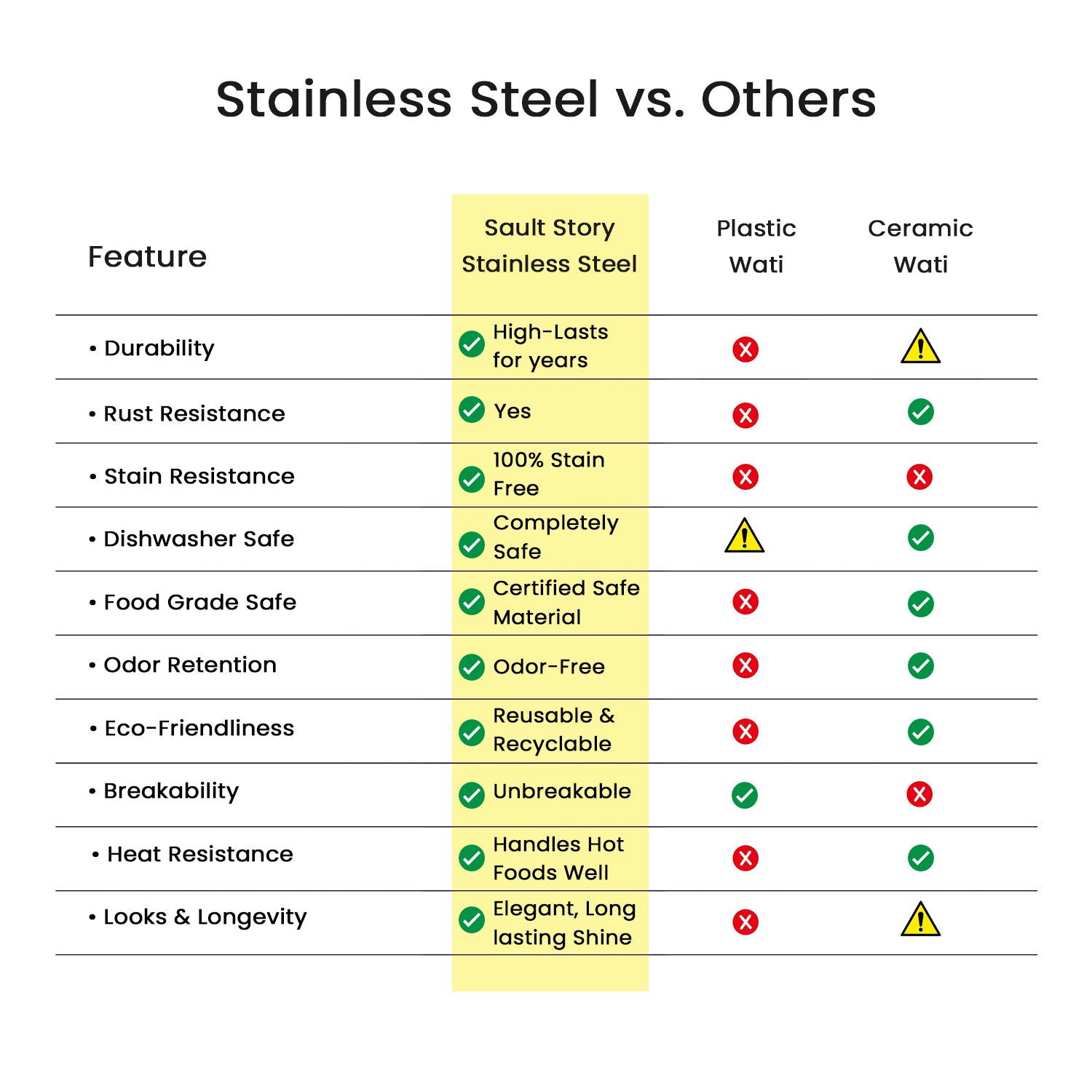 Food-Grade Stainless Steel: Safe for all types of food, including hot and acidic items.